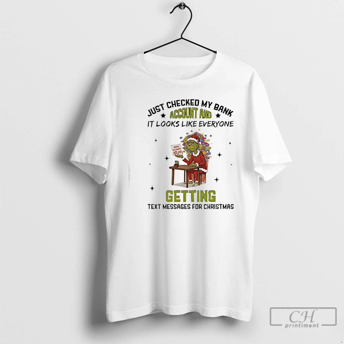 Classic Grinch Just Checked My Bank Account And It Looks Like Everyone Getting Text Messages For Christmas T Shirts Sweater Hoodie