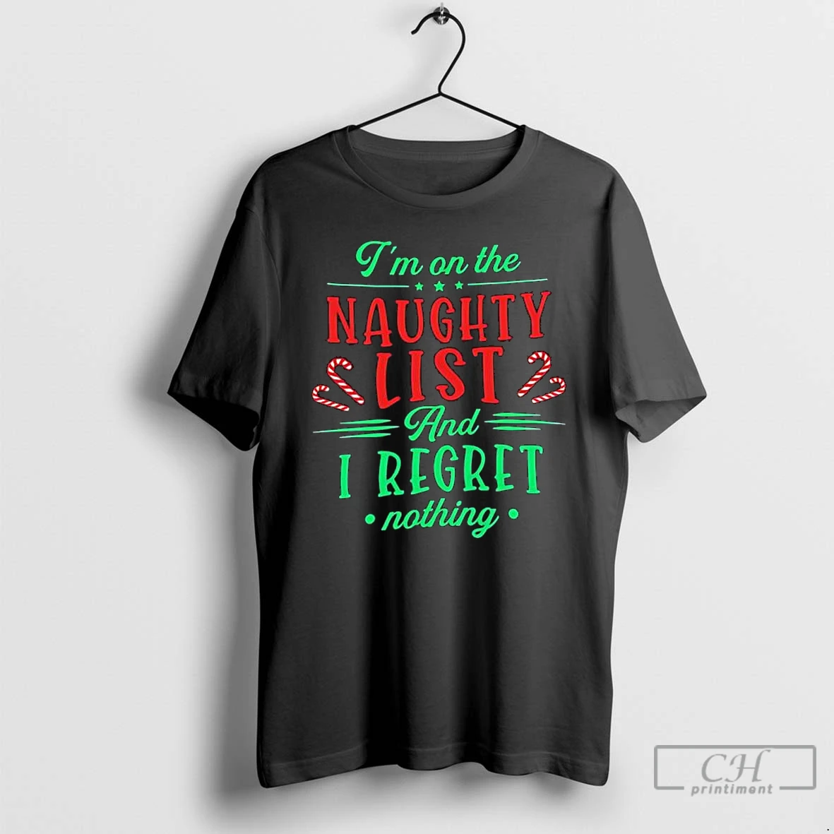 Classic Im On The Naughty List And I Regret Nothing Christmas Graphic T Shirts Sweater Hoodie