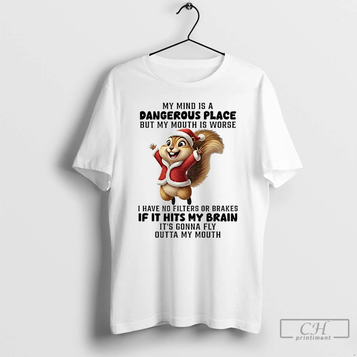 Classic Squirrel Santa Hat My Mind Is A Dangerous Place But My Mouth Is Worse I Have No Filters Or Brakes Christmas T Shirts Hoodie