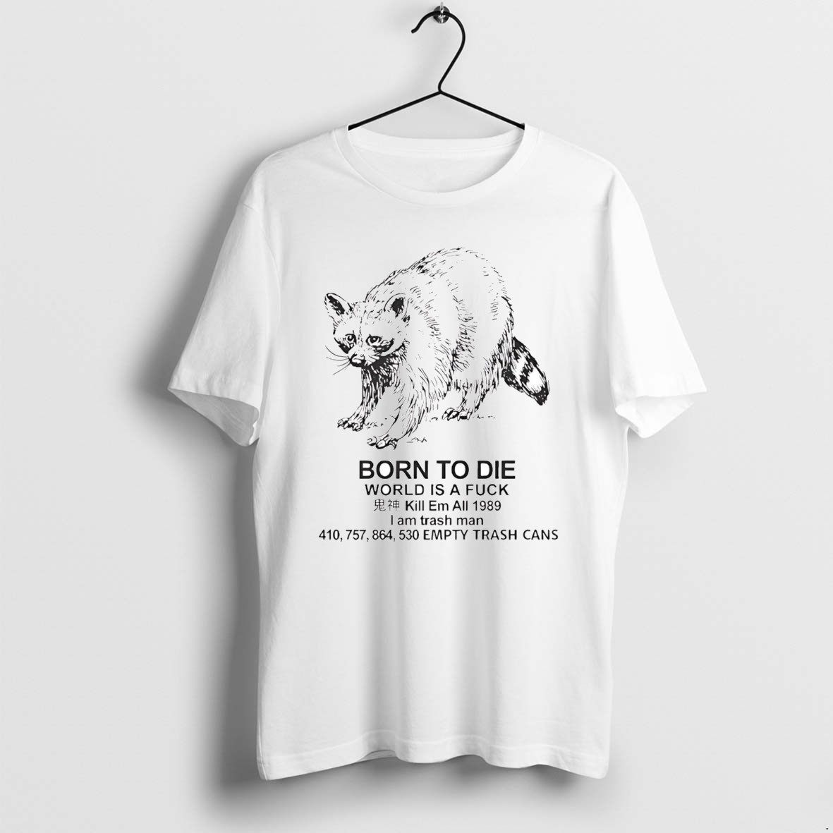 Official Raccoon Born To Die World Is A Fuck Kill Em All 1989 I Am Trash Man Shirt