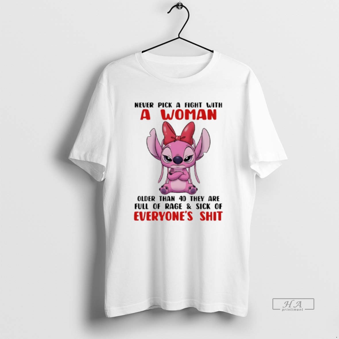 Official Stitch Angel Never Pick A Fight With A Woman Older Than 40 They Are Full Of Rage And Sick T Shirt