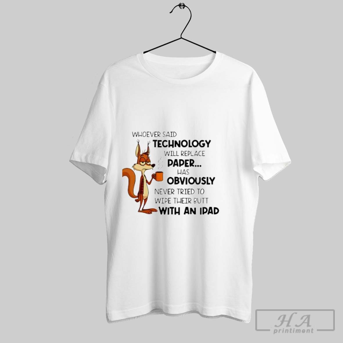 Official Whoever Said Technology Will Replace Paper Funny Squirrel Posters White Shirt