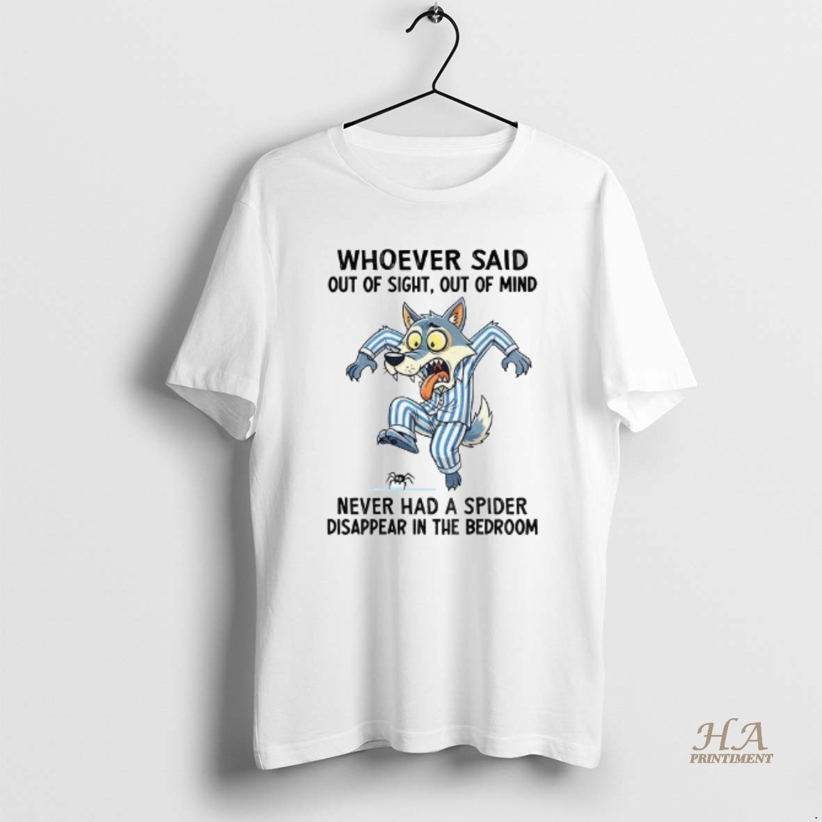 Official Wolf Whoever Said Out Of Sight Out Of Mind Never Had A Spider Disappear In The Bedroom T Shirt