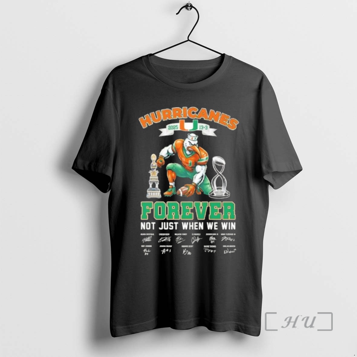 Officials 2025 13 3 Mario Cristobal And Players Miami Hurricanes Mascot Forever Not Just When We Win Premium T Shirts Sweater Hoodie