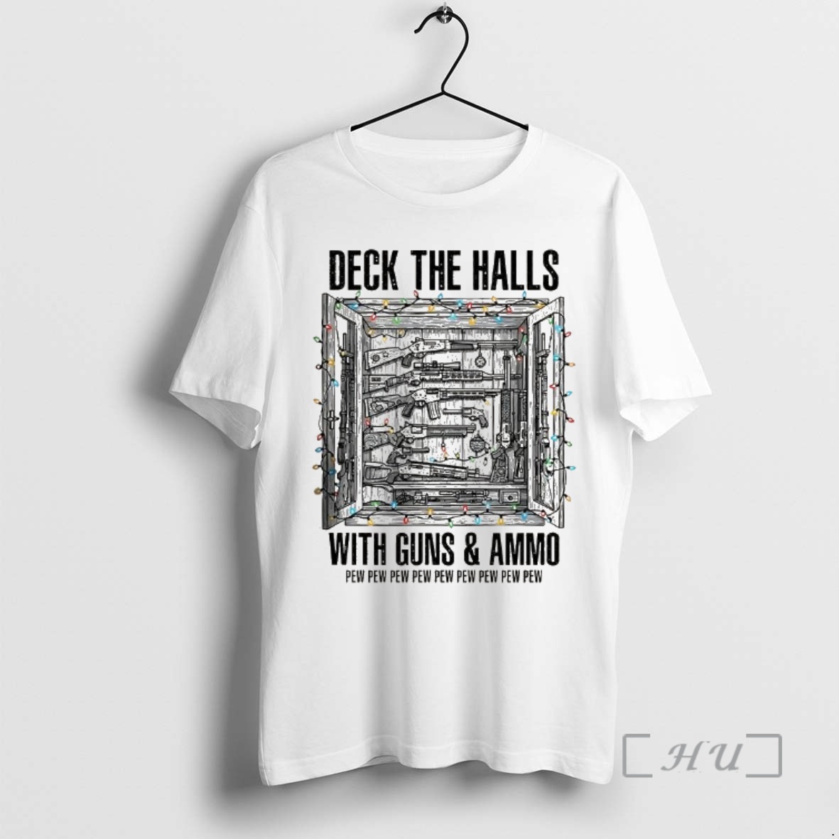 Officials Deck The Halls With Guns And Ammo Pew Pew Pew Pew Pew Christmas Light Premium T Shirts Sweater Hoodie