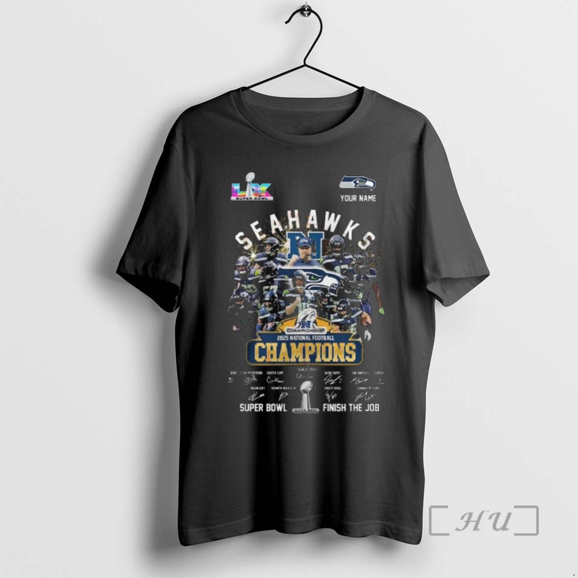 Officials Seahawks 2025 Nfc Champions Super Bowl Finish The Job Signatures Premium T Shirts Sweater Hoodie
