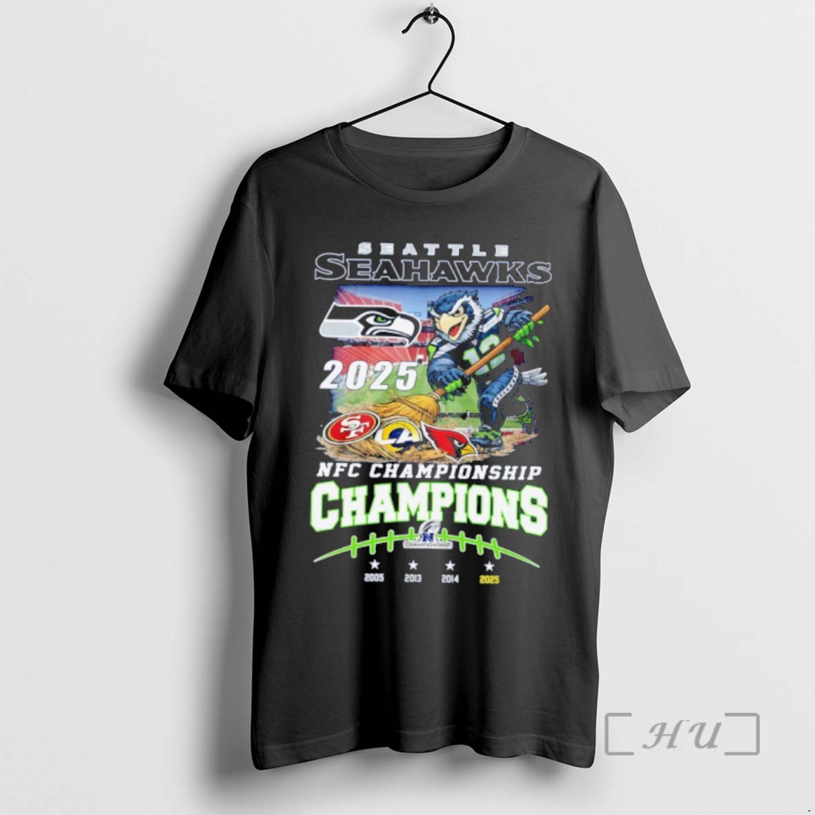 Officials Seattle Seahawks 2025 Nfc Champions Mascot Premium T Shirts Sweater Hoodie