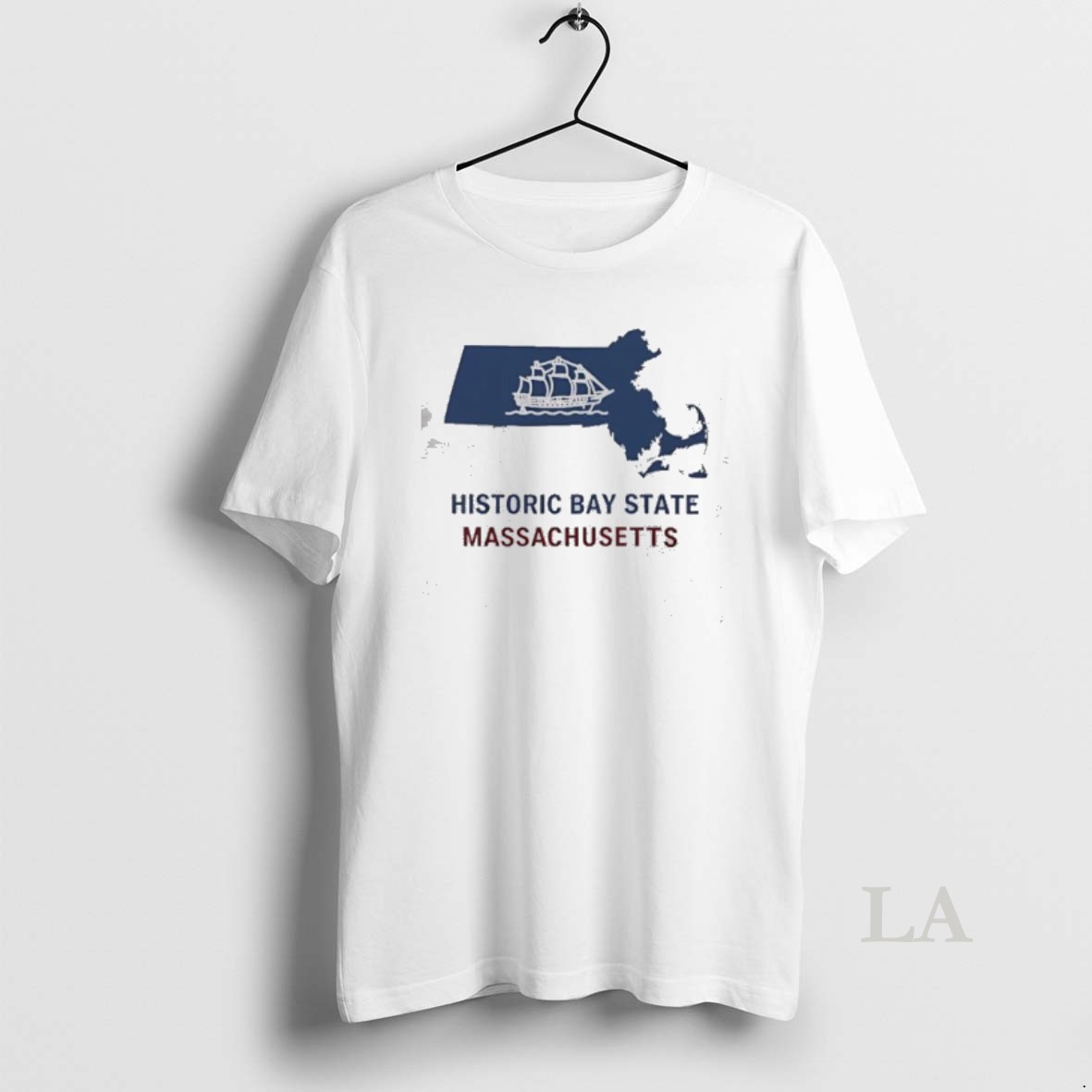 Original Historic Bay State Massachusetts Sailing Ship Blue Map Shirt