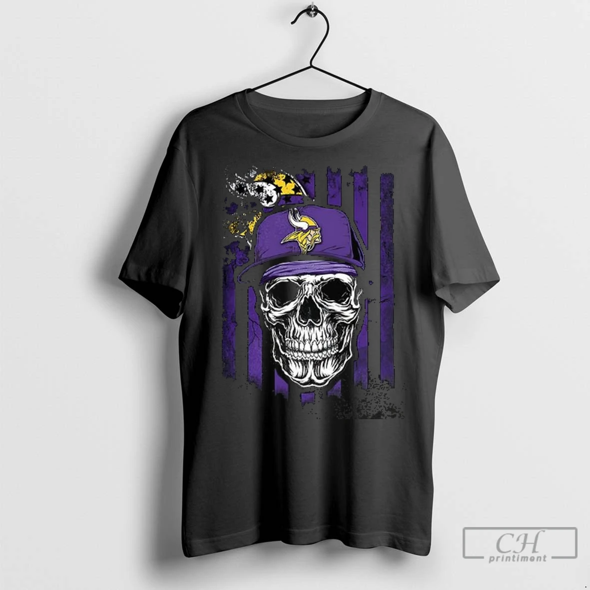 Premium Minnesota Vikings Nfl Skull American Flag Football Lover T Shirt
