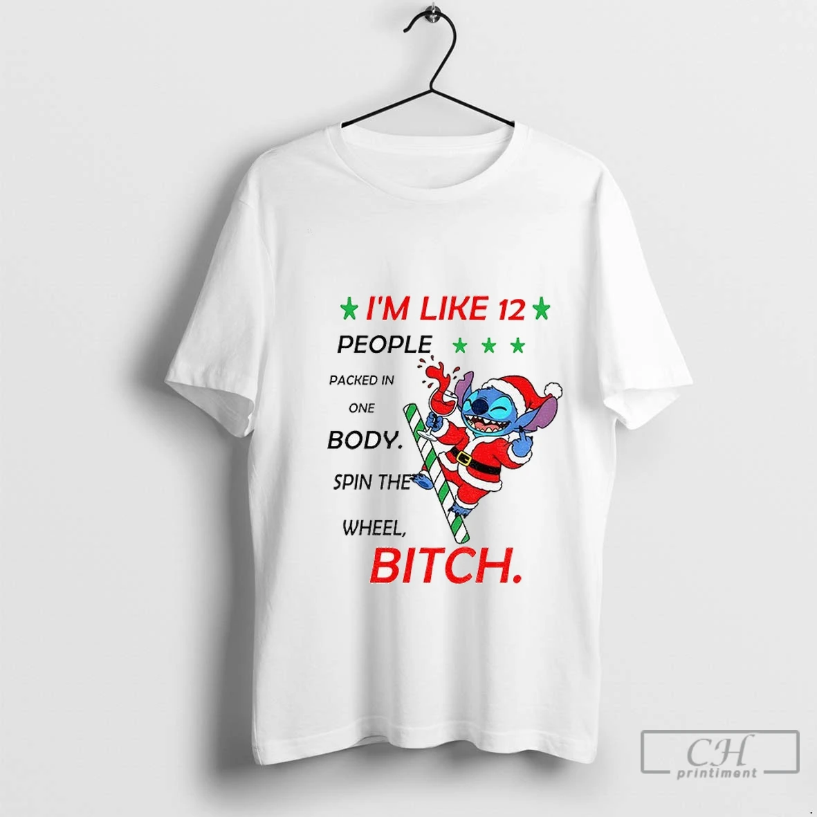 Premium Stitch Santa Hat Im Like 12 People Packed In One Body Spin The Wheel Bitch Christmas 2025 T Shirt