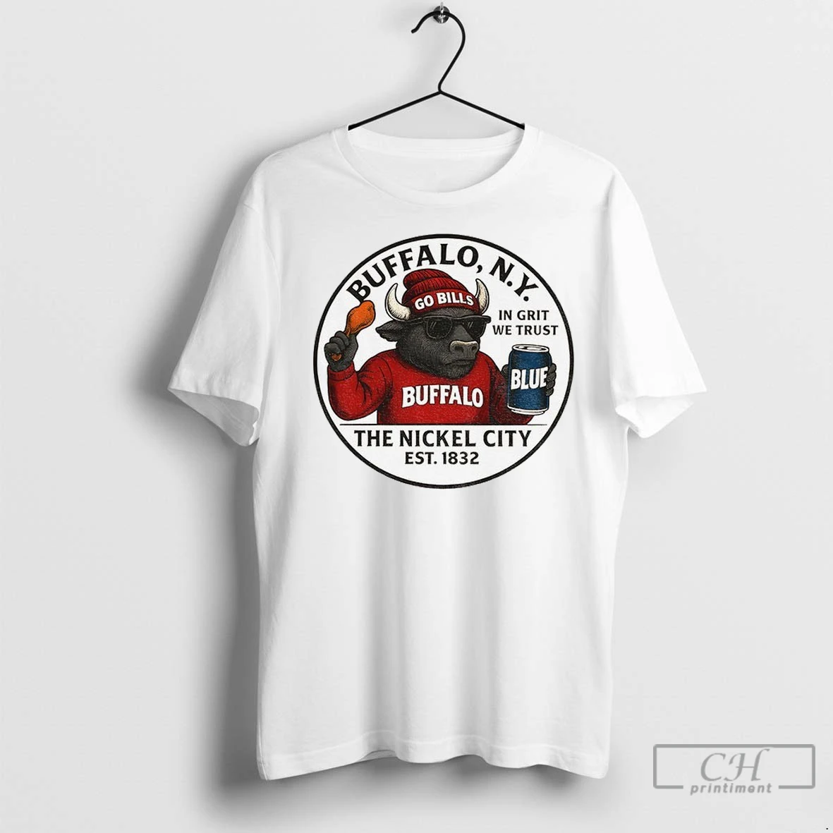 Premium The Nickel City Buffalo Ny In Grit We Trust Buffalo Bills Mascot Nfl Football T Shirt