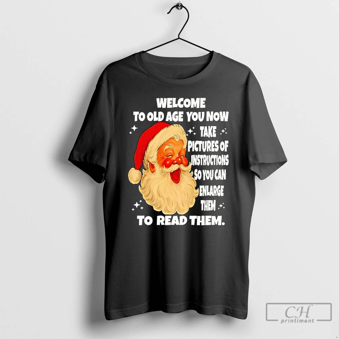 Premium Welcome To Old Age You Now Take Pictures Of Instructions So You Can Enlarge Them To Read Them Santa Claus T Shirts Sweater Hoodie
