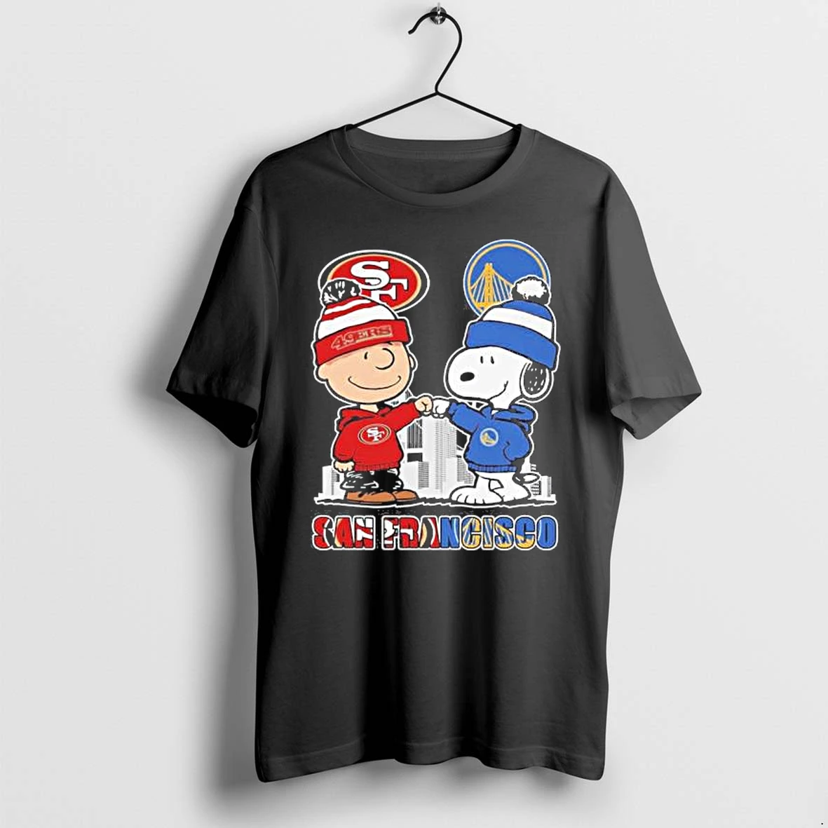 Snoopy Fist Bump Charlie Brown San Francisco 49es And Golden State Warriors Tshirts Sweater Hoodie