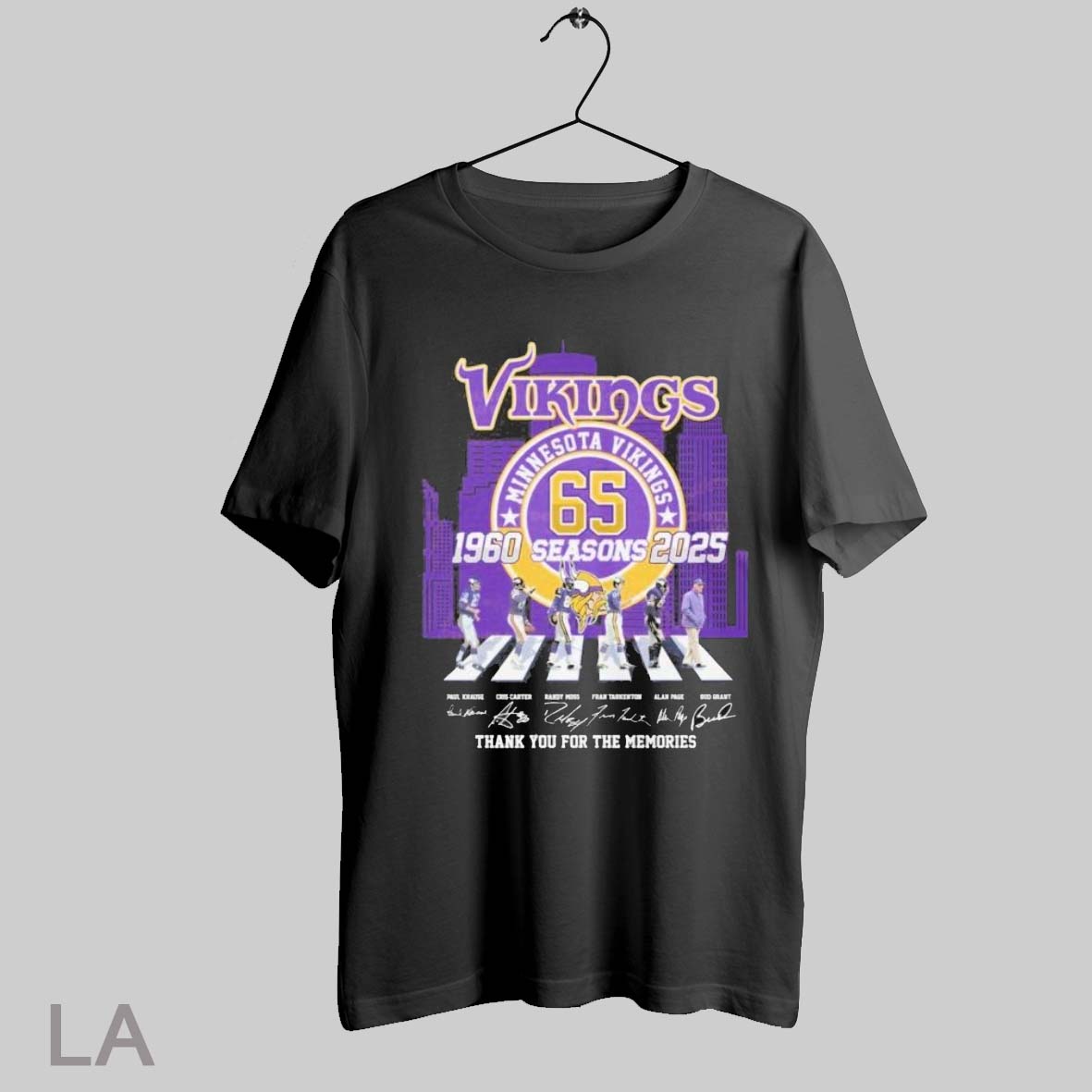 Top Minnesota Vikings Walking Abbey Road 65 Seasons 1960 2025 Thank You For The Memories Signatures T Shirt Sweatshirt Hoodie Shirt
