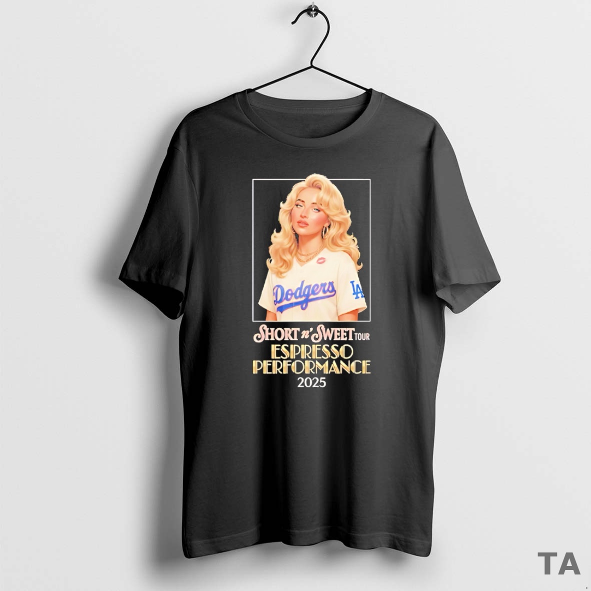 Top Sabrina Carpenter X Los Angeles Dodgers Short N Sweet Tour 2025 Espresso Performance T Shirt Sweater